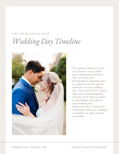 I created this guide from your photographer's perspective, covering each part of the wedding day and how much time we typically need to capture each part of the day. Please use this guide as you plan your perfect timeline.