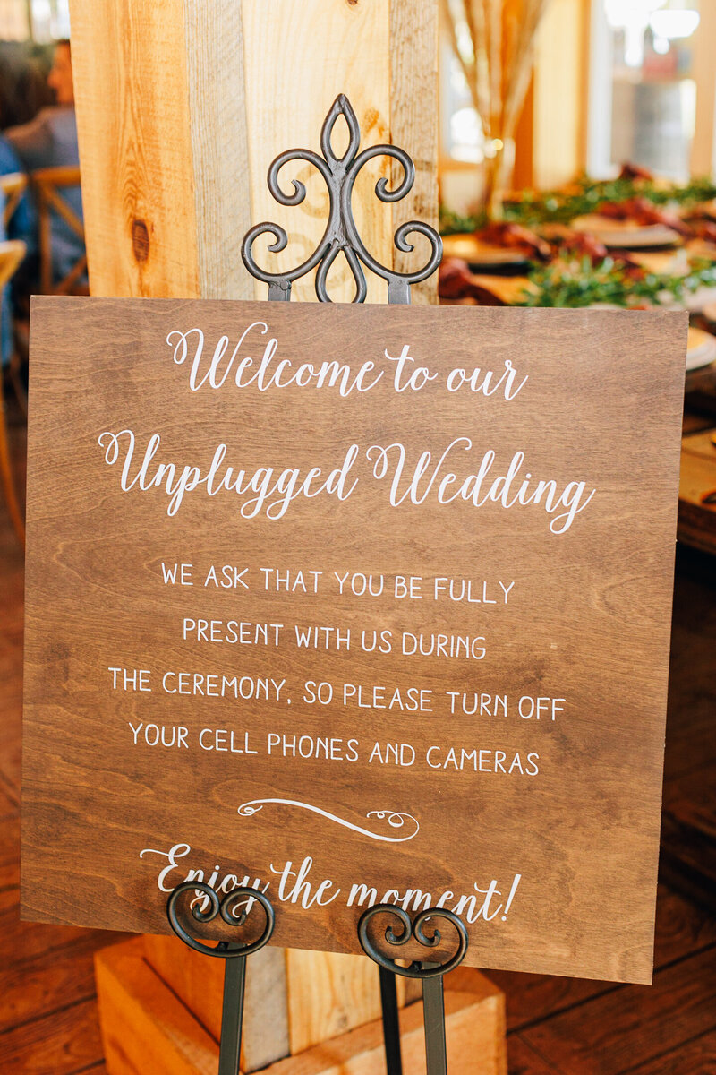 And while it might seem like a strange requests to ask guests to put down their phones, there's a pretty good reason for it! You made a big investment in photography and we're sure one of the last things you want on your wedding day is for our photos of your ceremony to be filled with obtrusive iPhones, iPads and relatives standing in the aisle with their own cameras. In order to help us do the best possible job capturing your wedding, we recommend asking guests to unplug during the ceremony.